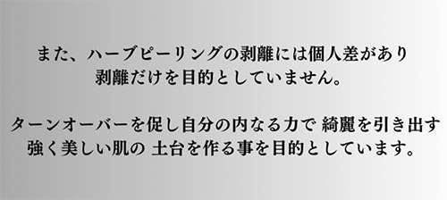 剥離がなくてもハーブが吸収され細胞再生がおこなわれています。 - 専用の化粧品を使わなくてはいけませんか?